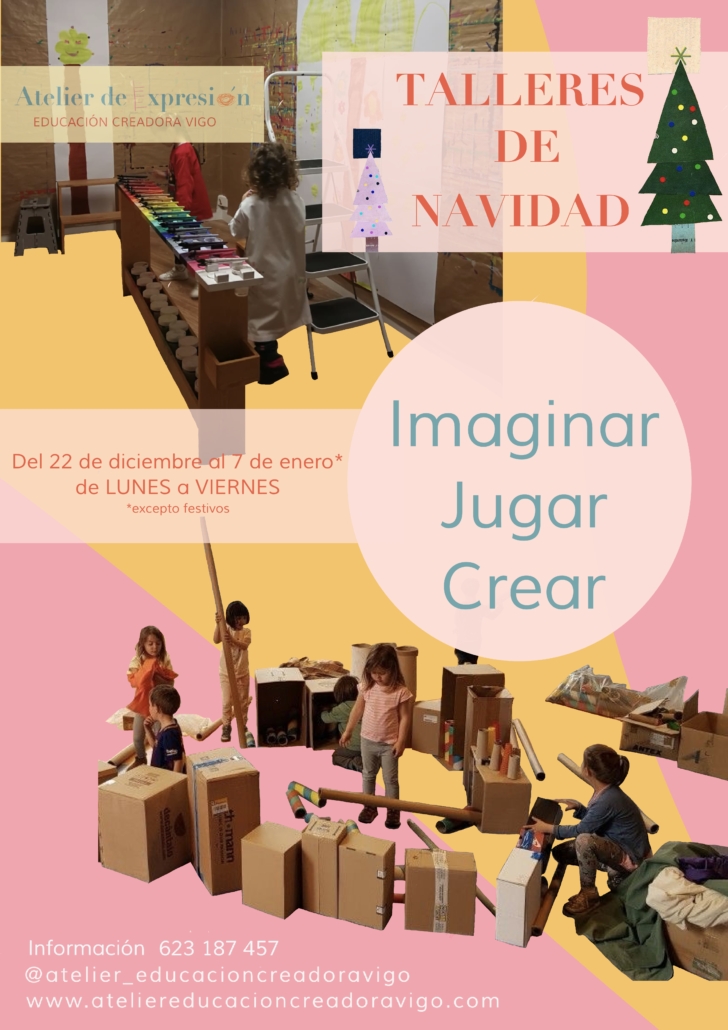 Esta Navidad hemos preparado un taller muy especial en El Atelier de Expresión. Tenemos todas las mañanas reservadas para imaginar y crear en un espacio preparado y cuidado, con un acompañamiento y asistencia respetuosos, creando las condiciones adecuadas para que el juego de los más pequeños se pueda desplegar sintiéndose libres para crear.